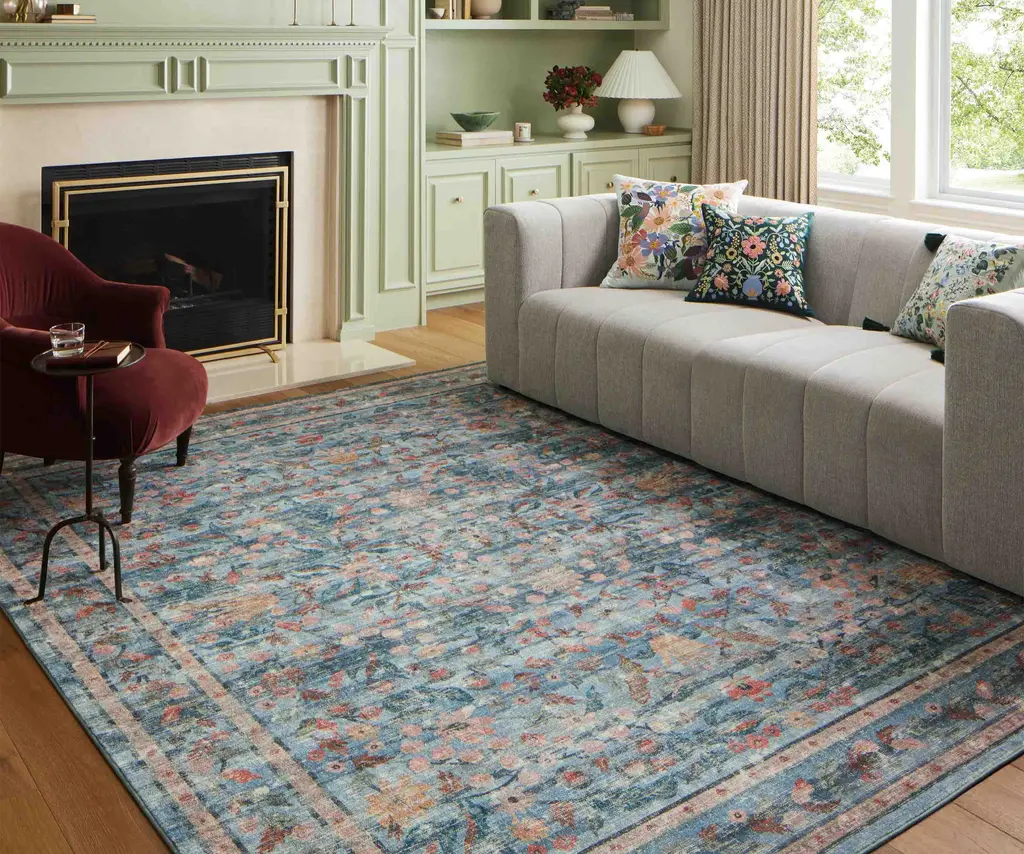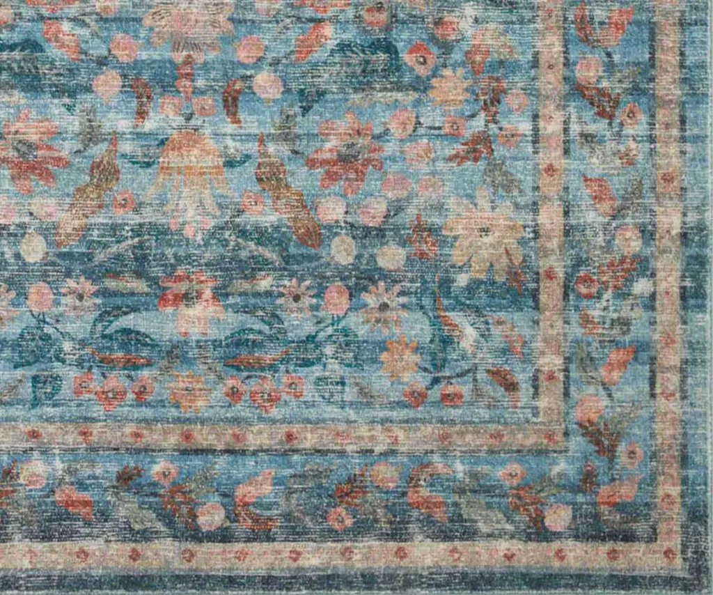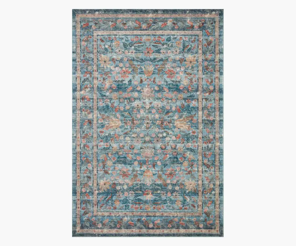 The floral design of the Eve rug almost creates a compass rose, with statement blooms facing in the four cardinal directions, surrounded by a detailed border. The Courtyard collection was made with Loloi's CloudPile construction, an incredibly soft fabrication that combines the best of affordable printed rugs with the plushness of a pile. Part of our Rifle Paper Co. × Loloi collaboration. The layout and scale of our rugs is adjusted to accommodate each available size, and may be different than what is pictured here. Images of each size are available by hovering over the desired size on our desktop site.