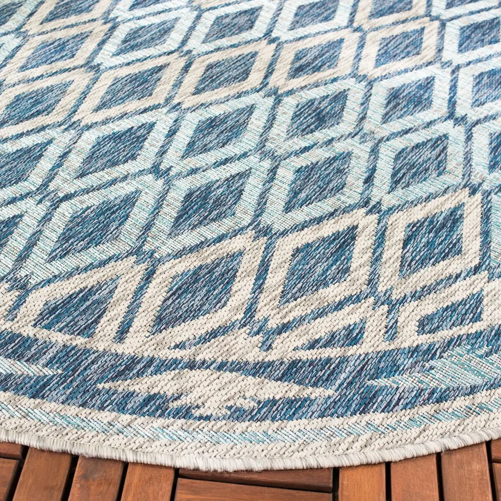 Courtyard Ikat Outdoor Rug, Navy/gray
