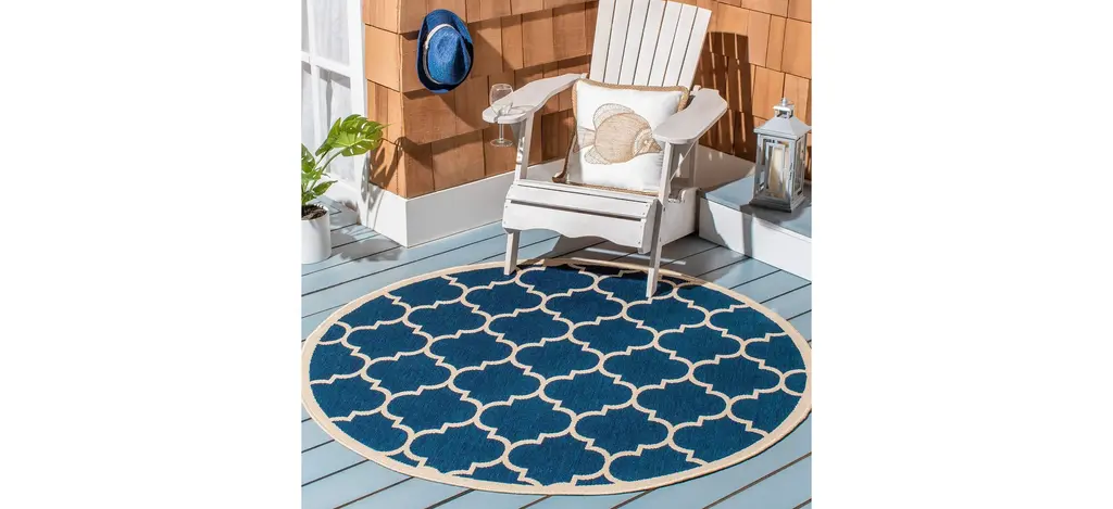 The Courtyard Lattice Indoor/Outdoor Area Rug Round brings interior design style to busy living spaces, inside and out. Courtyard is beautifully styled with patterns from classic to contemporary, all in colors, shapes, and sizes to fit any area. Courtyard area rugs are made with enhanced polypropylene in a special sisal weave that achieves intricate designs that are easy to maintain - simply clean with a garden hose.