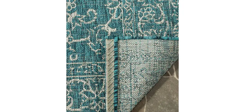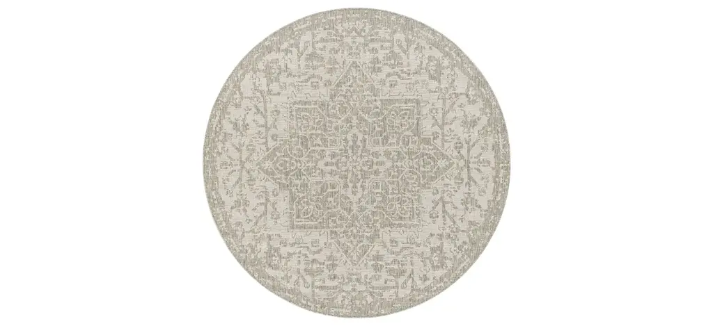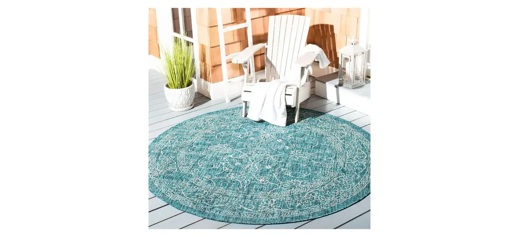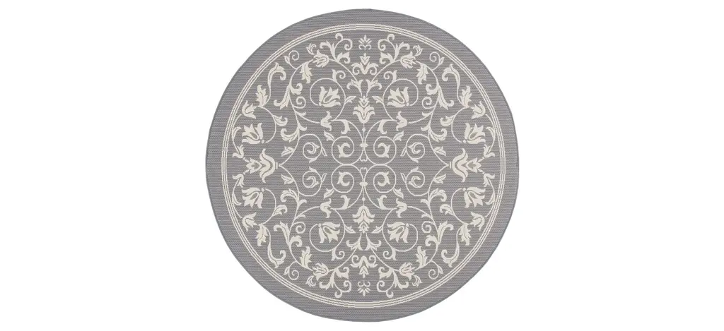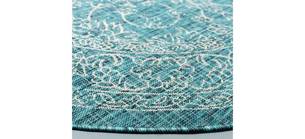 The Courtyard Pacific Indoor/Outdoor Area Rug Round brings interior design style to busy living spaces, inside and out. Courtyard is beautifully styled with patterns from classic to contemporary, all in colors, shapes, and sizes to fit any area. Courtyard area rugs are made with enhanced polypropylene in a special sisal weave that achieves intricate designs that are easy to maintain - simply clean with a garden hose.