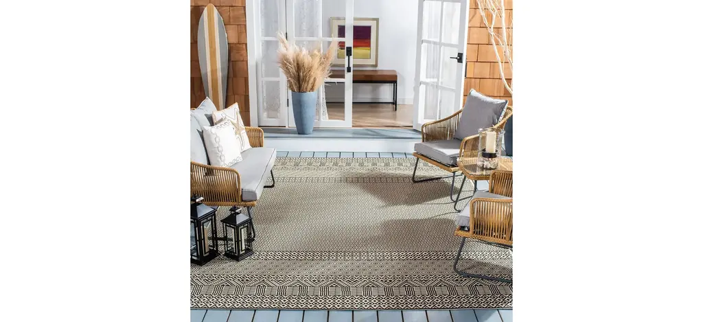 The Courtyard Weave Indoor/Outdoor Area Rug brings interior design style to busy living spaces, inside and out. Courtyard is beautifully styled with patterns from classic to contemporary, all in colors, shapes, and sizes to fit any area. Courtyard area rugs are made with enhanced polypropylene in a special sisal weave that achieves intricate designs that are easy to maintain - simply clean with a garden hose.