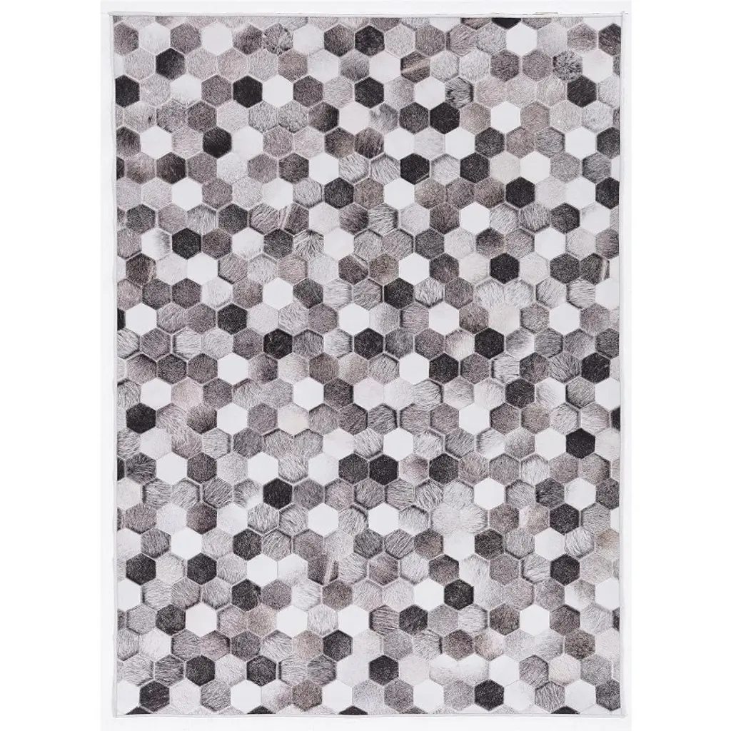 Cowhide Leather Patchwork Silver And Ivory Leather Modern Geometric Custom Made Rug - 2.6x11