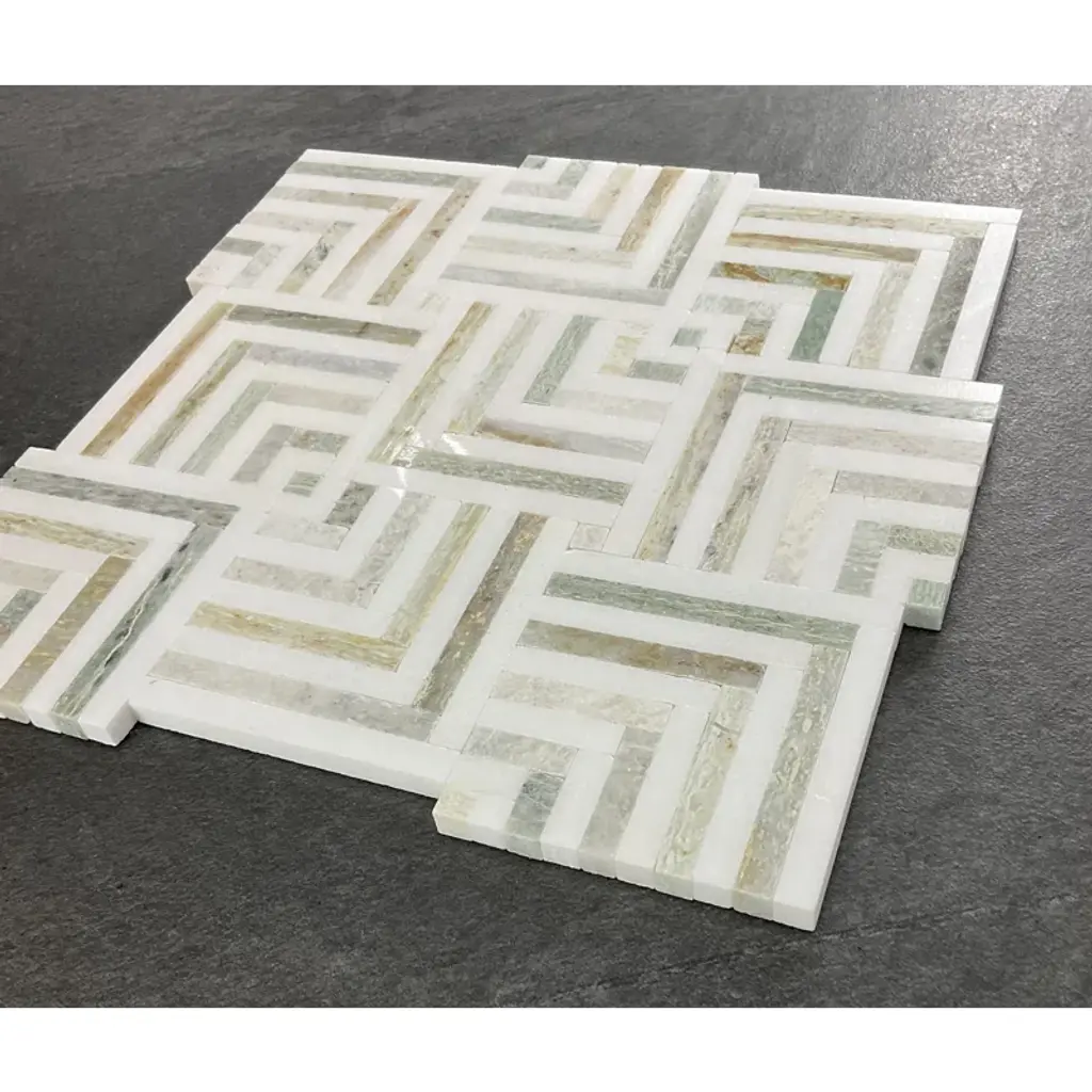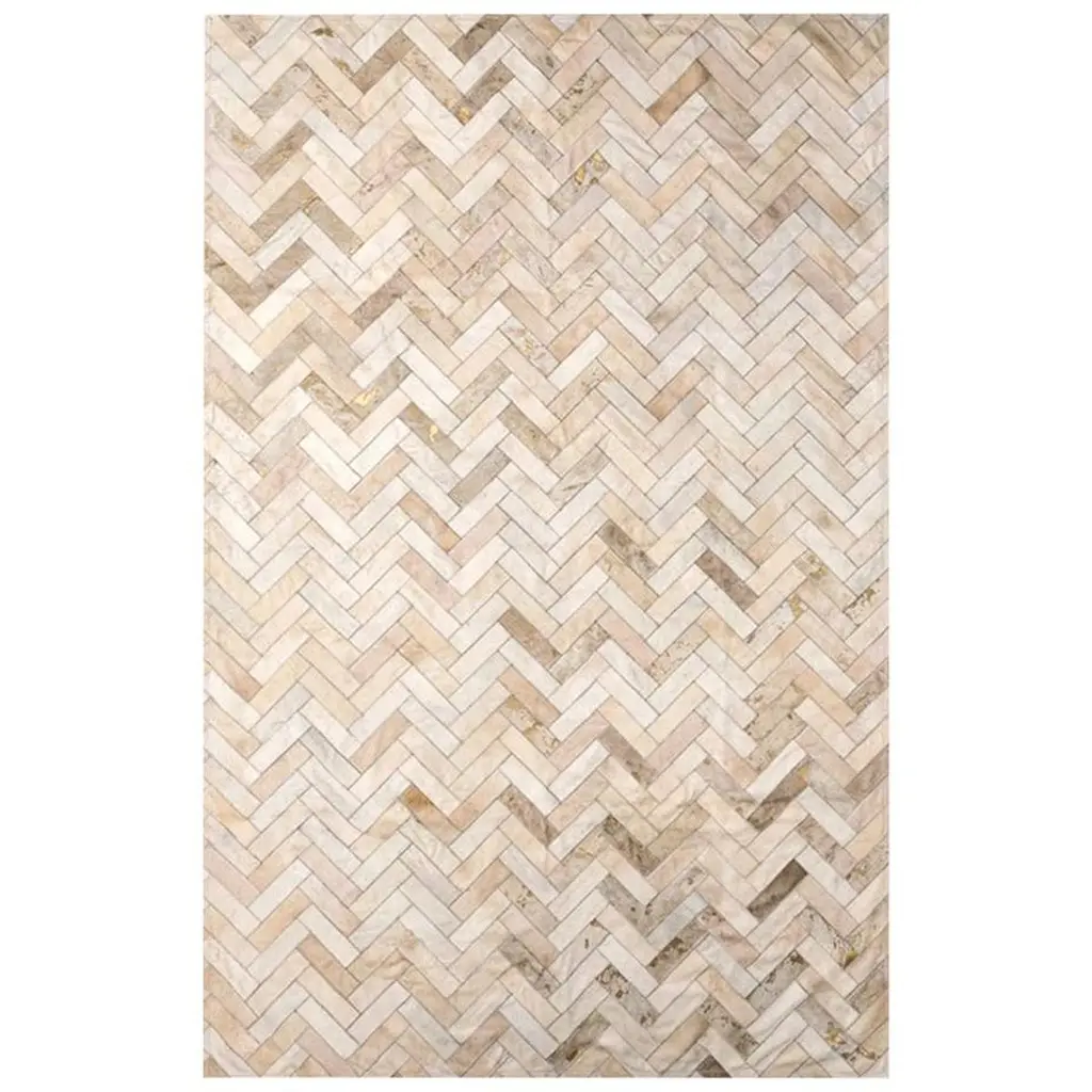 Cream & Gold Herringbone Customizable Estrella Cowhide Area Floor Rug Large