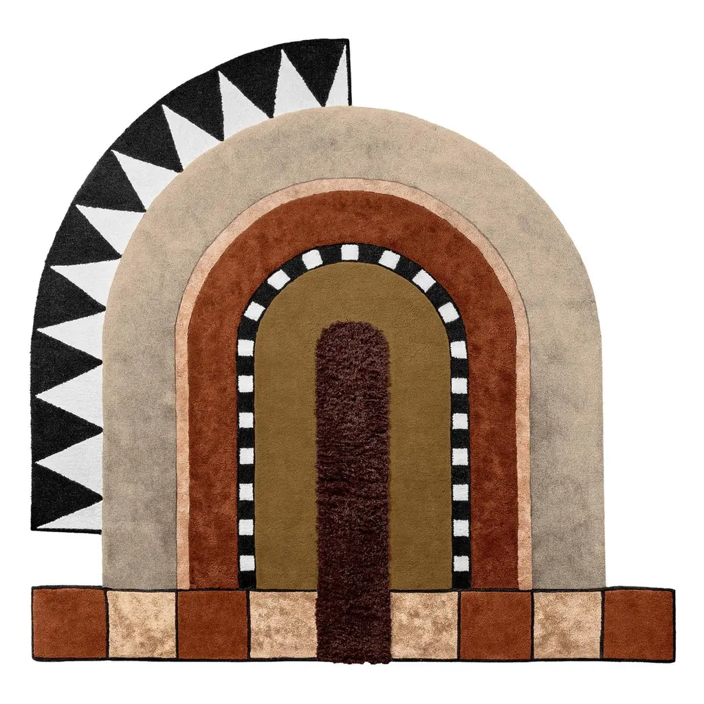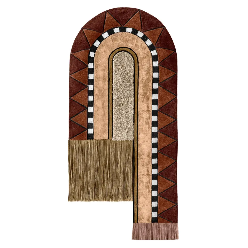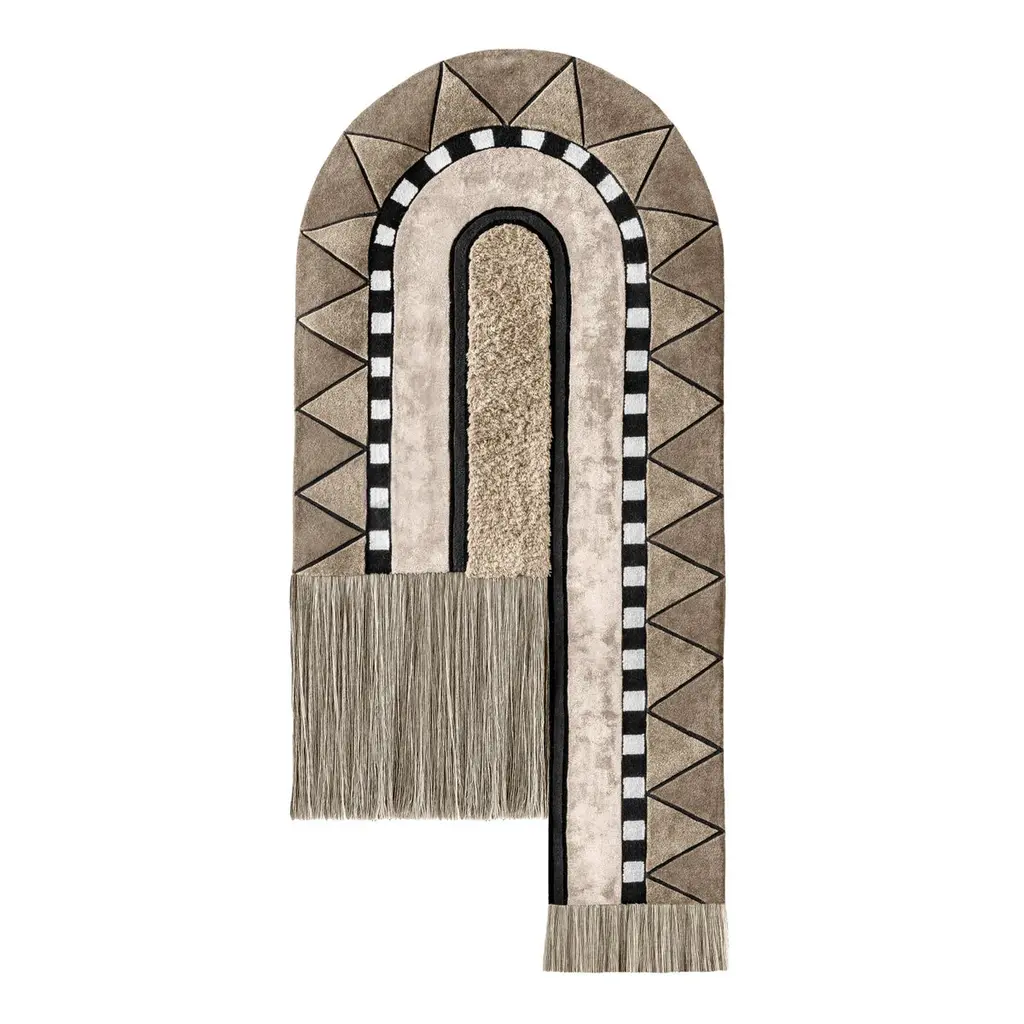 The Crest II track tapestry rug draws inspiration from the tracks run by athletes in ancient Olympic Games. Mixed neutrals and geometric patterns create a bold, edgy vibe. This rug is hand-tufted in India, made with wool, silk, and shag. Can be paired together with Crest I to create a bigger rug. Each piece is an imaginative take on the tracks of ancient arenas, serving as an artwork that can be hung as a tapestry as well.Retreat to your very own 'Altis' with Altis Ornamentum by MONIOMI, a specialized collection of custom furniture and accessories drawing on the renowned sports arena aesthetics of ancient times. The Altis was a sacred space utilized by athletes during the Olympic games, harboring the temples of Zeus and Hera. Building on this vision with a modern twist, ultimate luxury is melded with clean lines and geometric shapes in our design of lush tapestry rugs, wall coverings, unique furnishings, and curated collectibles.
