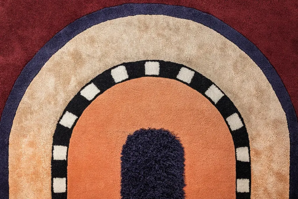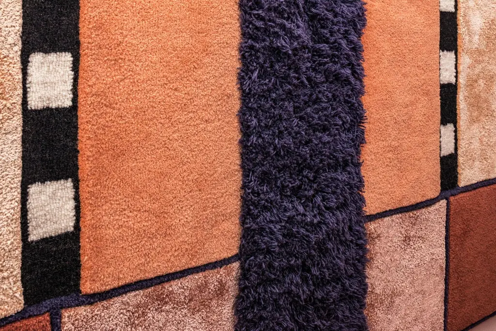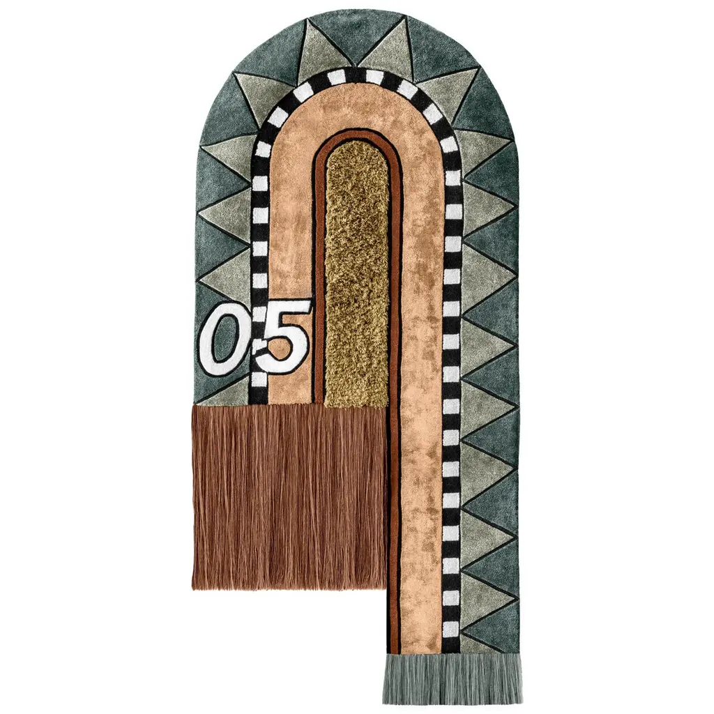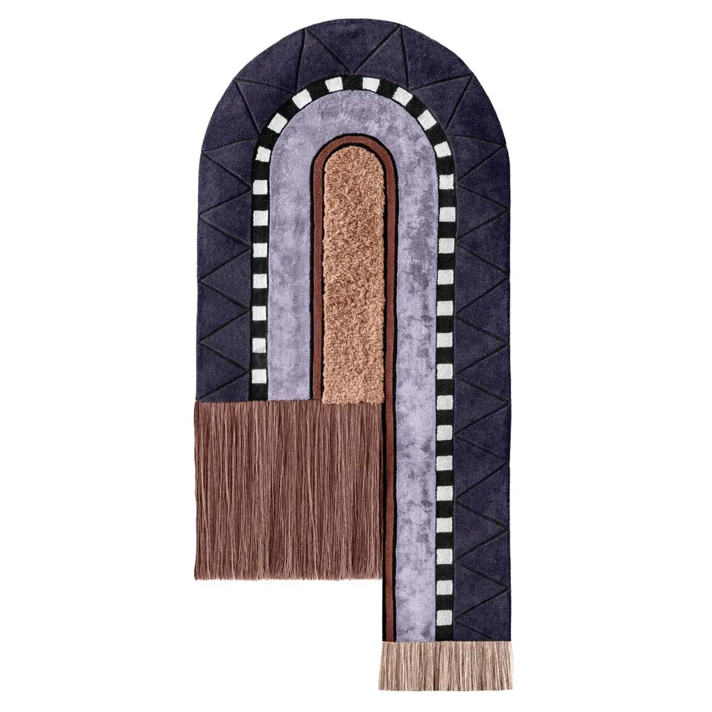 The Crest II track tapestry rug draws inspiration from the tracks run by athletes in ancient Olympic Games. Mixed neutrals and geometric patterns create a bold, edgy vibe. This rug is hand-tufted in India, made with wool, silk, and shag. Can be paired together with Crest I to create a bigger rug. Each piece is an imaginative take on the tracks of ancient arenas, serving as an artwork that can be hung as a tapestry as well.Retreat to your very own 'Altis' with Altis Ornamentum by MONIOMI, a specialized collection of custom furniture and accessories drawing on the renowned sports arena aesthetics of ancient times. The Altis was a sacred space utilized by athletes during the Olympic games, harboring the temples of Zeus and Hera. Building on this vision with a modern twist, ultimate luxury is melded with clean lines and geometric shapes in our design of lush tapestry rugs, wall coverings, unique furnishings, and curated collectibles.