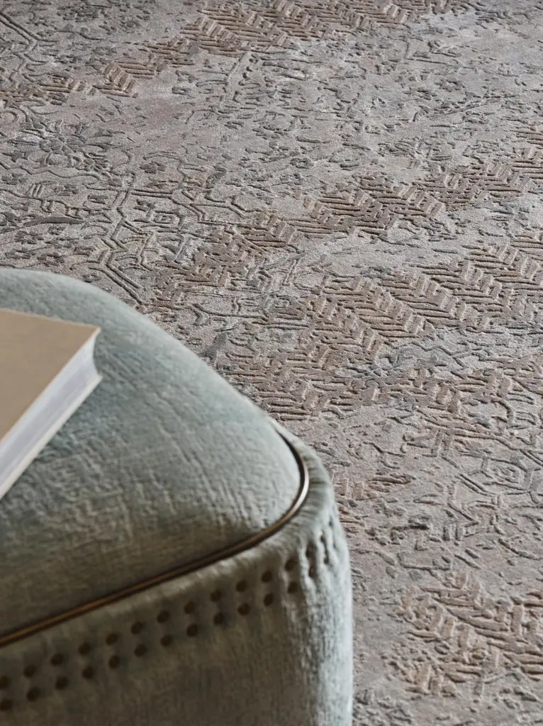 A collection where distinction and unity converge, where the boundaries of form and colour blur into something uniquely whole. These carpets are more than masterful pieces; they are an embodiment of the beautiful tension between individuality and togetherness. Each design is a quiet yet powerful dialogue, where varied elements, tones, and textures find their place, creating a singular expression of art and craftsmanship.Hand knotted in Wool and Botanical Silk, each carpet is a rare balance of movement and stillness, of contrast and cohesion, of many made into one.Available in Colors Beige Gold & Grey Blue in different sizes 170 x 245 cm - $ 4,673180 x 275 cm - $ 5,736245 x 305 cm - $ 8,497275 x 365 cm - $ 11,470305 x 425 cm - $ 14,869365 x 460 cm - $ 19,117365 x 550 cm - $ 22,940.
