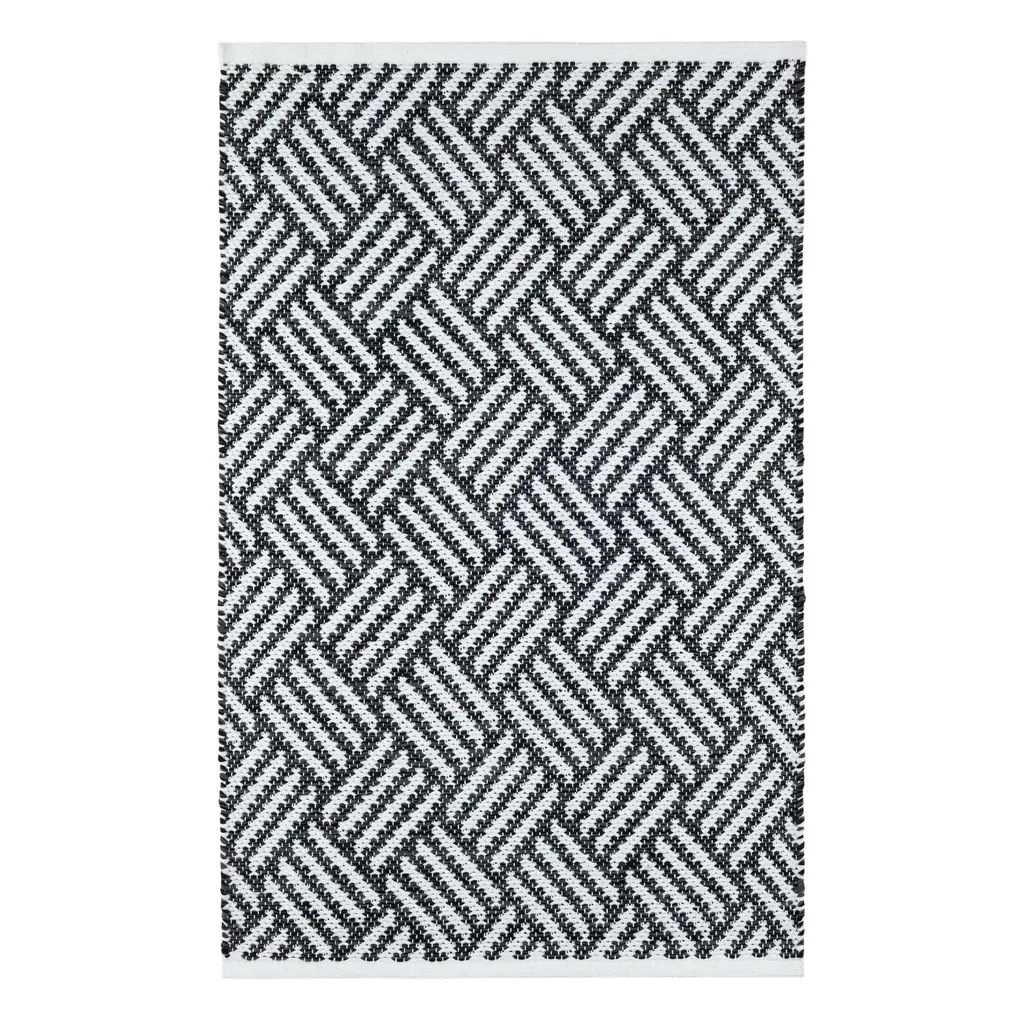 A diagonal basket weave of graphic stripes made of durable and washable polypropylene can withstand the elements and combat years of wear and tear. Perfect for use on the porch or patio, it dries quickly and won't fade in the sunshine or mildew in the shade. Easy to care for and enjoy for many seasons to come.