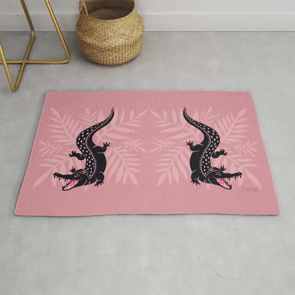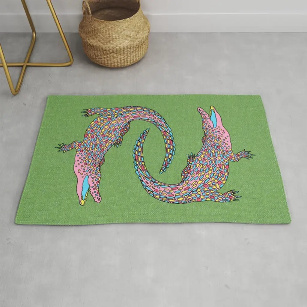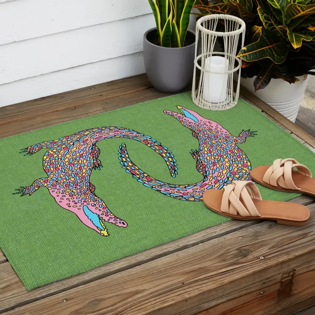 Crocodiles (Textured Green And Pink) Outdoor Rug