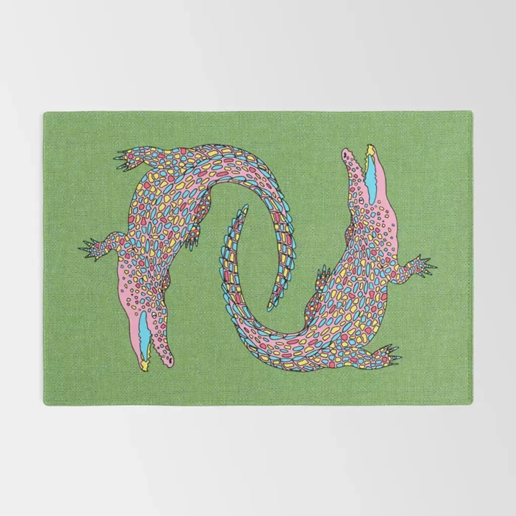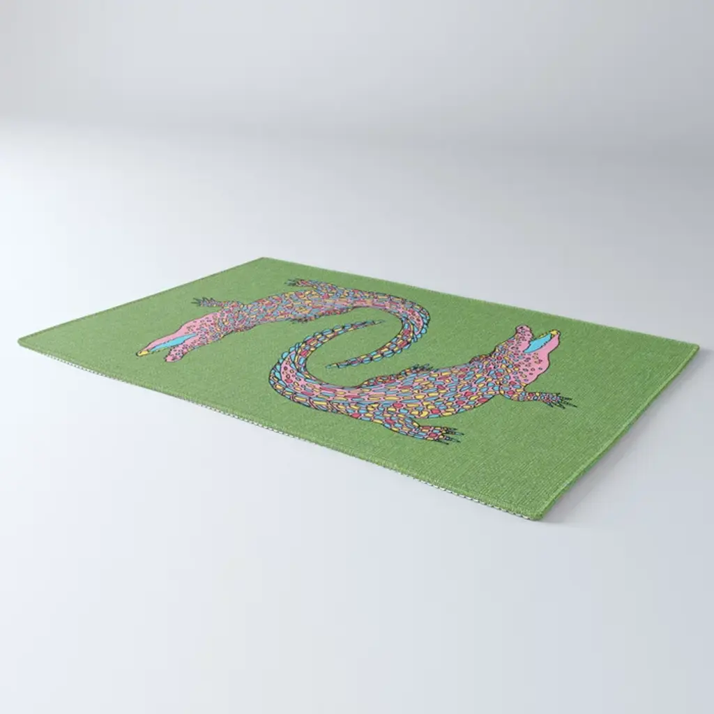 Crocodiles (Textured Green And Pink) Rug