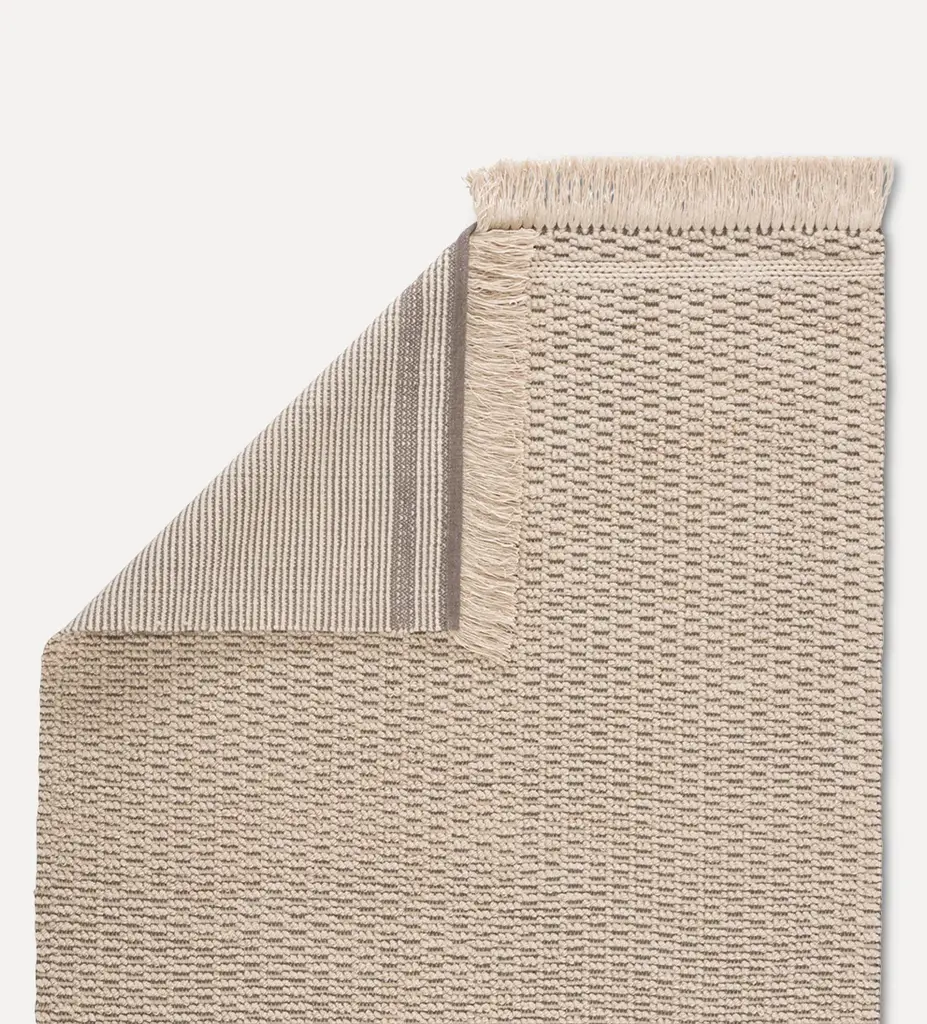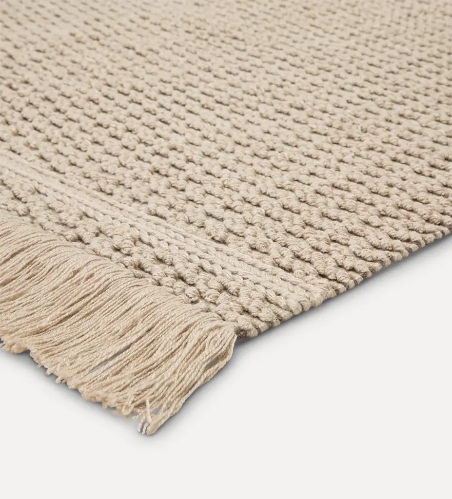 Add beneath your dining room table, on your back patio, or in your kitchen for a pop of texture and versatility. This texture-rich area rug provides a neutral, yet inviting beige and dark taupe colorway to complement any decor style. Beauty lies in the details of the eco-friendly Cronin rug. Materials: 100% Wool Hand tufted Pile height: 1/2"