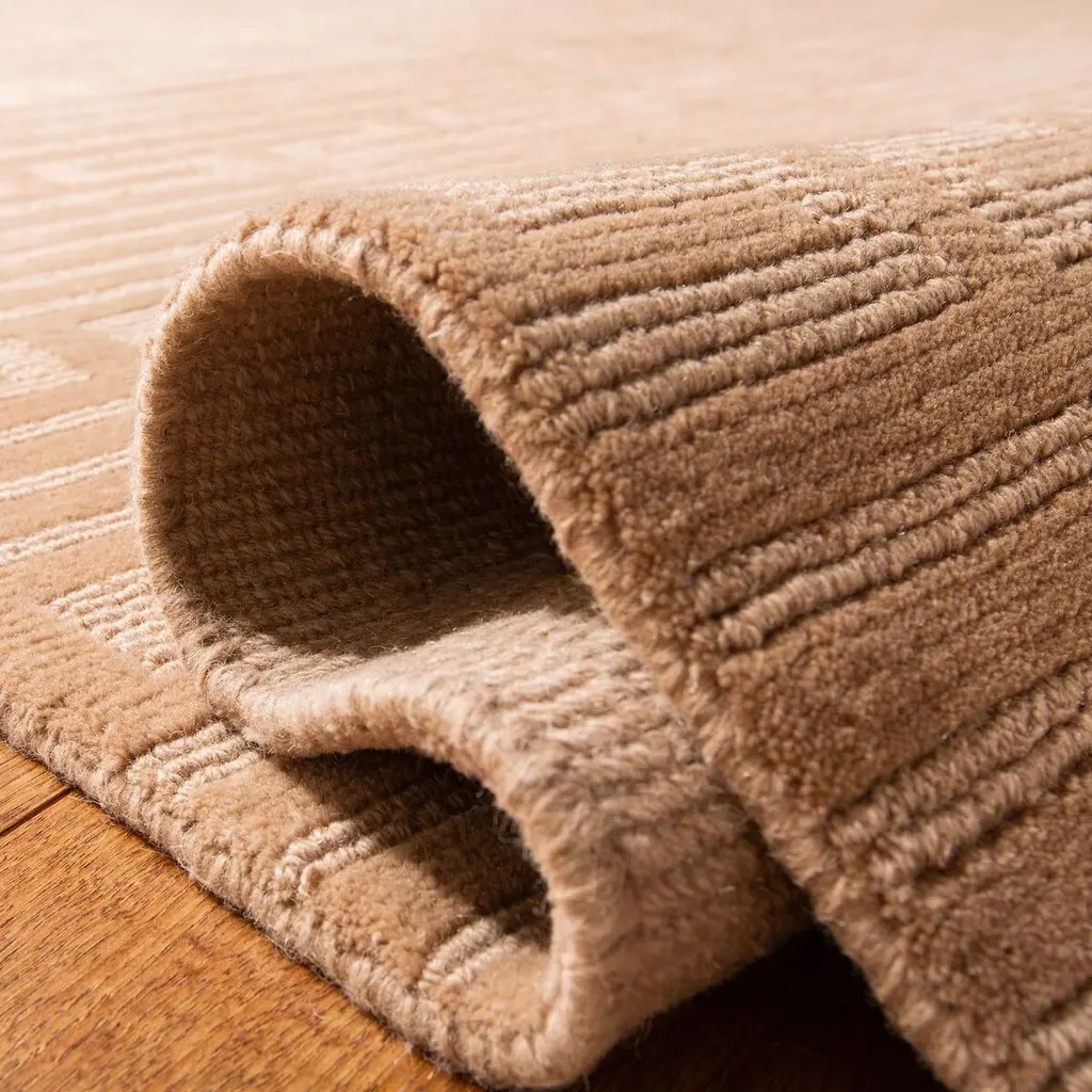 Introducing our exquisite hand-knotted area rug, a luxurious addition to any space. This Small Rectangle rug measures 4 feet by 6 feet, perfectly sized for a variety of rooms. Expertly crafted in India, it boasts a pile height of 1/2 inch, providing a perfect balance of comfort and durability. The wool pile construction ensures a soft, plush feel underfoot, while the camel and multi-color palette lends warmth and sophistication. The rug's distinctive pattern features an alluring geometric design with a dynamic interplay of lines and shapes, creating a modern aesthetic that complements both contemporary and traditional decor. The attention to detail in the hand-knotted technique highlights the artisanal quality and exceptional craftsmanship. Whether you're looking to add a touch of elegance to your living room, bedroom, or study, this wool area rug is an impeccable choice that combines style, comfort, and quality. Elevate your space with this beautifully designed piece that is sure to become a treasured part of your home for years to come.