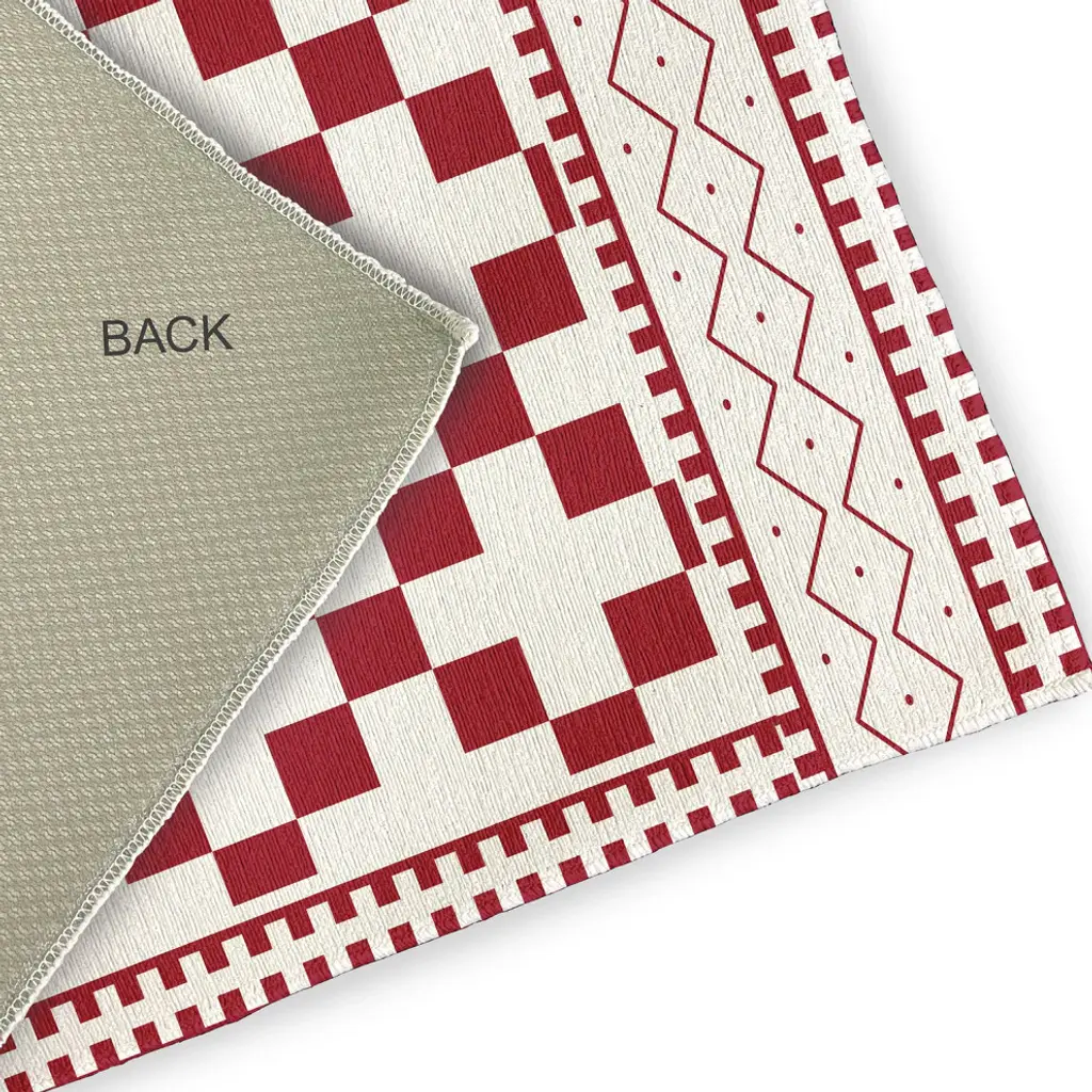 Create a colorfully casual look to your home decor with a Cross and Squares Indoor/outdoor Rug from our Stripe a Balance Collection. Everyone will delight in the space defining design brought to your porch, patio, kitchen, or bathroom by this area rug. The artistic and colorful design is printed on a soft polyester base with a skid resistant backing, making it a perfect way to add color, flare and personality to any indoor or outdoor space. To clean, use a mild soap and lay flat to dry.