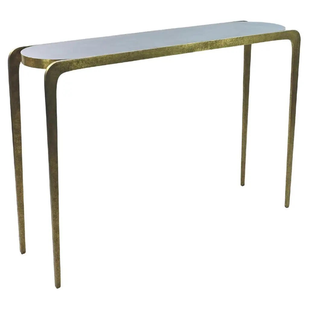 A solid white marble top is supported by a gold finished iron frame. Our Curve Console gets its name from the "U" shaped curves featured in the supports. From a fashion forward perspective, Global Views offers accessories, furniture, statement lighting, and an assortment of rugs and mirrors to add beauty and joy to your home.