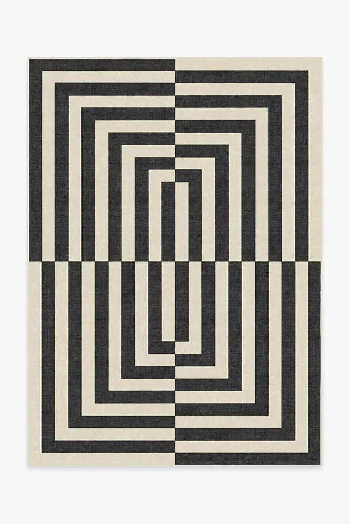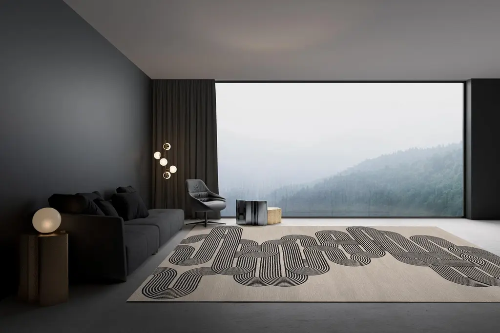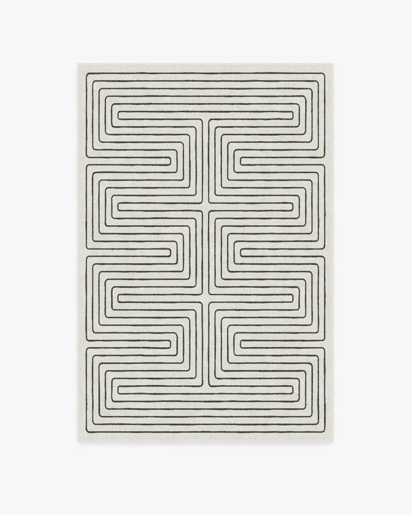 A striking design of strong visual impact by Italian interior designer and architect Giulio Brambilla, this mid-century style rug will make a statement in any modern home. Superbly fashioned of wool from New Zealand and bamboo silk, it is hand-tufted on two different levels to enhance the three-dimensional quality of the captivating maze enriching the beige backdrop. Available in other colors, size, and in a hand-knotted version upon request.