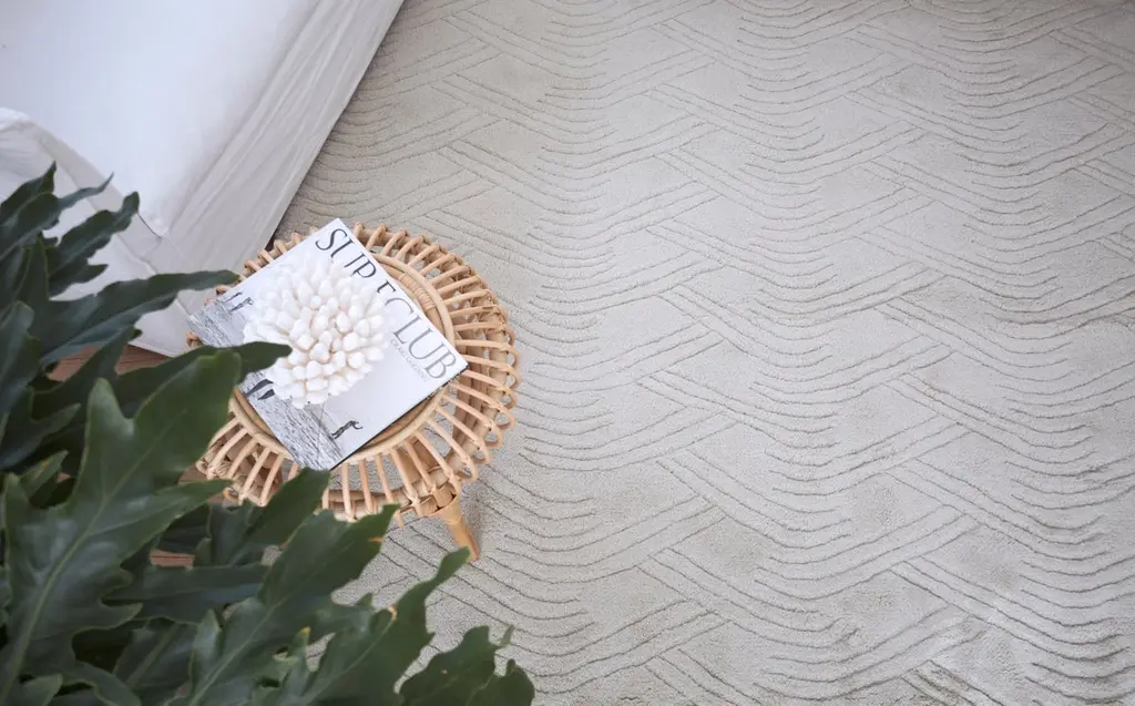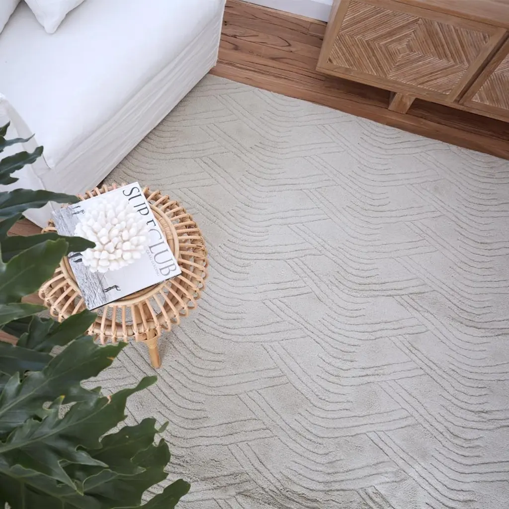 The voyage weave features a curved undulating line pattern, reminiscent of dunes and sand formations. This subtle etched-style is expertly hand-loomed in a deep pile of pure wool, with a Classic tonal palette of fresh cream and dusty dove grey.All ground control rugs are hand-loomed to order. Please allow 6 weeks for delivery. Composition : Wool 75%, cotton 25%.