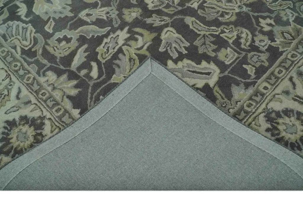 Custom Made Antique Design Charcoal And Beige Traditional Floral Hand Tufted Rug - 2.6x6
