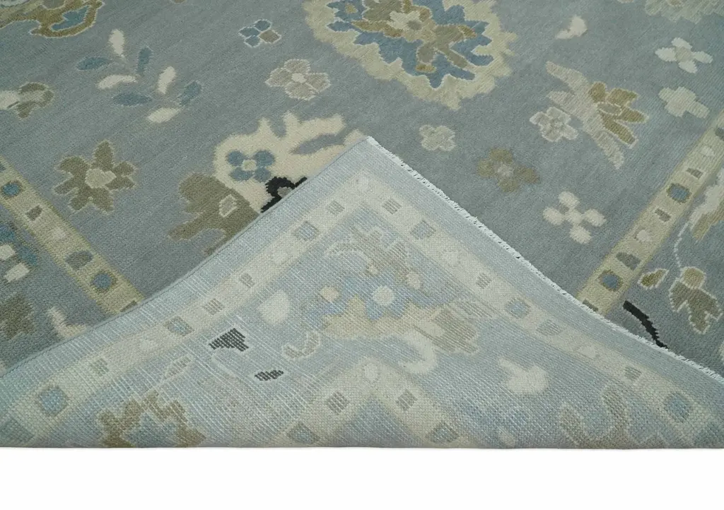 This classic traditional Oushak wool area rug will add a timeless elegance to your living space. Featuring antique silver and beige coloring, this hand-knotted rug is offered in Multi Sizes and will provide years of durable service. Hand-Knotted SIZES ARE MADE TO ORDER IN 30-45 DAYS Made with Wool Color : Silver and Ivory Made with 28 knots per square inch Oushak rugs have been made for centuries and carry a tradition and art. This specific rug is made in India, in the city of Bhadohi. Bhadohi is one of the biggest rug manufacturing cities. Carpet weaving in the region dates back to the 16th century during the reign of Akbar. The skilled artisans of Bhadohi have been carrying the tradition of rug-making for centuries. USERS GUIDE Avoid prolonged moisture Vacuum regularly and/or shake to remove dust Do not pull any loose threads. Use scissors to simply cut the ends The blot spills immediately with a white cloth. Harsh chemicals may damage or fade the rug Use rug protectors under heavy furniture