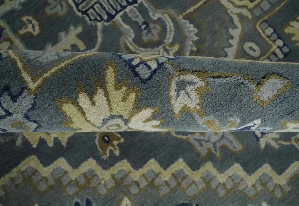 Custom Made Antique Style Gray, Blue And Beige Hand Tufted Traditional Wool Area Rug - 3X8