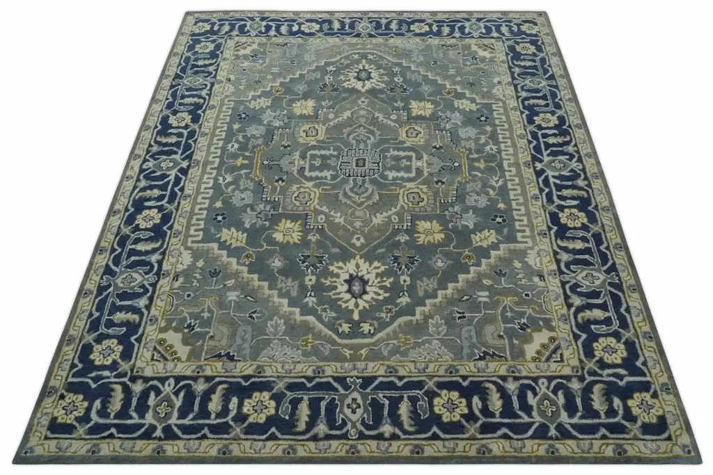 This Antique Floral Gray, Blue, and Beige Hand Tufted Traditional wool Area Rug features a unique design of antique motifs on a Gray wool background. This traditional Heriz rug is hand tufted for superior quality, and invites a sophisticated atmosphere to any living space. Hand-Tufted Made to Order in 15-30 Days Color : Gray, Blue and Beige Perfect Fit for a modern room, kids, living or bedroom USERS GUIDE Avoid prolonged moisture Vacuum regularly and/or shake to remove dust Do not pull any loose threads. Use scissors to simply cut the ends Blot spills immediately with a white cloth. Harsh chemicals may damage or fade the rug Use rug protectors under heavy furniture