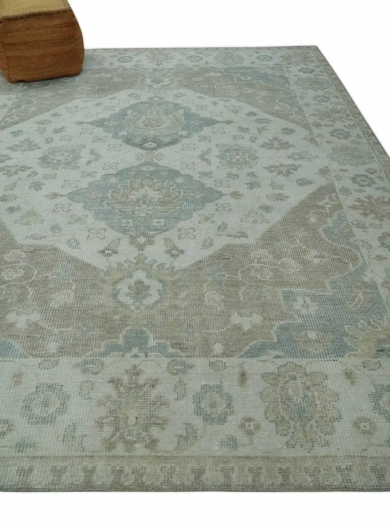 This Antique Floral Teal, Ivory, and Camel custom-made wool Area Rug is an expertly crafted piece of décor. Each meticulous detail, from the antique floral motif to the luxurious wool construction, has been expertly crafted to make a statement in any space. This rug adds a timeless and unique touch to any room. ALL SIZES ARE MADE TO ORDER IN 30-60 Days Hand-Knotted Made with Wool Low Pile Color: Teal, Ivory, and Camel Made with 22 knots per square inch This specific rug is made in India, in the city of Bhadohi. Bhadohi is one of the biggest rug manufacturing cities. Carpet weaving in the region dates back to the 16th century during the reign of Akbar. The skilled artisans of Bhadohi have been carrying the tradition of rug-making for centuries. USERS GUIDE Avoid prolonged moisture Vacuum regularly and shake to remove dust Do not pull any loose threads. Use scissors to cut the ends simply Blot spills immediately with a white cloth. Harsh chemicals may damage or fade the rug Use rug protectors under heavy furniture