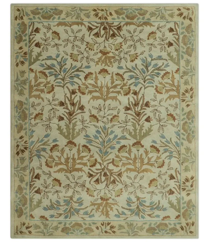 Custom Made Beige And Brown Traditional Floral Design Hand Tufted Wool Area Rug - 2.6x6