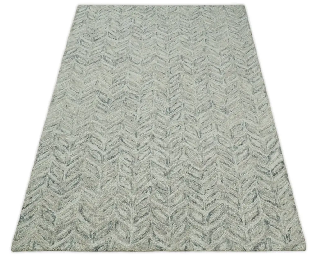 Custom Made Beige And Gray Leaf's Hand Tufted Modern Scandinavian Wool Loop Rug - 2.6x15