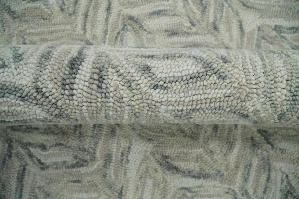 Custom Made Beige And Gray Leaf's Hand Tufted Modern Scandinavian Wool Loop Rug - 2.6x7