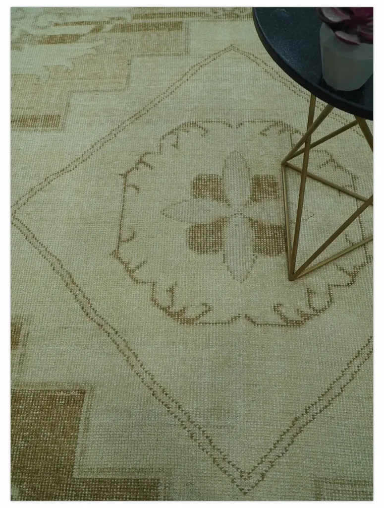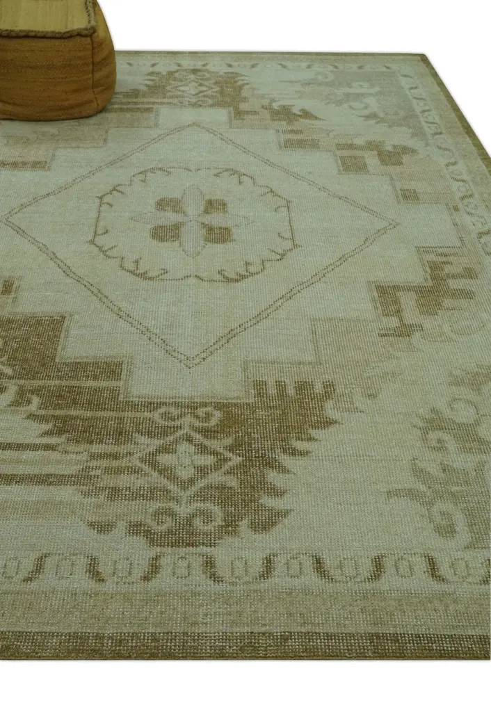 This Hand Knotted Traditional Custom rug features a timeless beige and olive palette, expertly crafted from high-quality wool. Each rug is custom-made and adheres to traditional Heriz design techniques, guaranteeing a durable and luxurious addition to your home decor. ALL SIZES ARE MADE TO ORDER IN 30-45 Days Hand-Knotted Made with Wool Color: Beige and Olive USERS GUIDE Avoid prolonged moisture Vacuum regularly and shake to remove dust Do not pull any loose threads. Use scissors to cut the ends simply Blot spills immediately with a white cloth. Harsh chemicals may damage or fade the rug Use rug protectors under heavy furniture