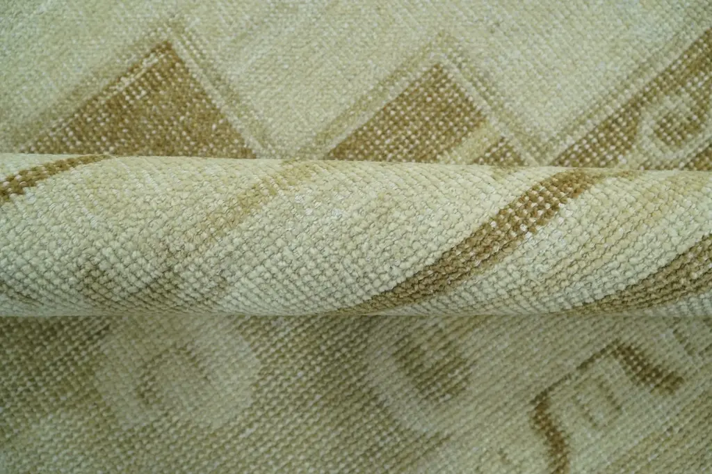 Custom Made Beige And Olive Hand Knotted Traditional Wool Area Rug - 2.6x14