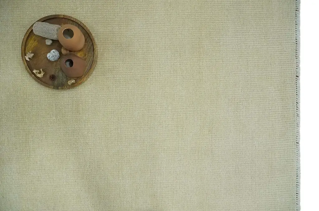 This custom made beige modern area rug is expertly hand-knotted from premium wool for a luxurious, durable finish. With a solid plane design, it provides an elegant yet contemporary look, perfect for any room in your home. Hand-Knotted Turkish Knot SIZES ARE MADE TO ORDER IN 30-45 DAYS Made with Low Pile Wool Color : Beige Made with 28 knots per square inch This specific rug is made in India, in the city of Bhadohi. Bhadohi is one of the biggest rug manufacturing cities. Carpet weaving in the region dates back to the 16th century during the reign of Akbar. The skilled artisans of Bhadohi have been carrying the tradition of rug-making for centuries. USERS GUIDE Avoid prolonged moisture Vacuum regularly and/or shake to remove dust Do not pull any loose threads. Use scissors to simply cut the ends The blot spills immediately with a white cloth. Harsh chemicals may damage or fade the rug Use rug protectors under heavy furniture