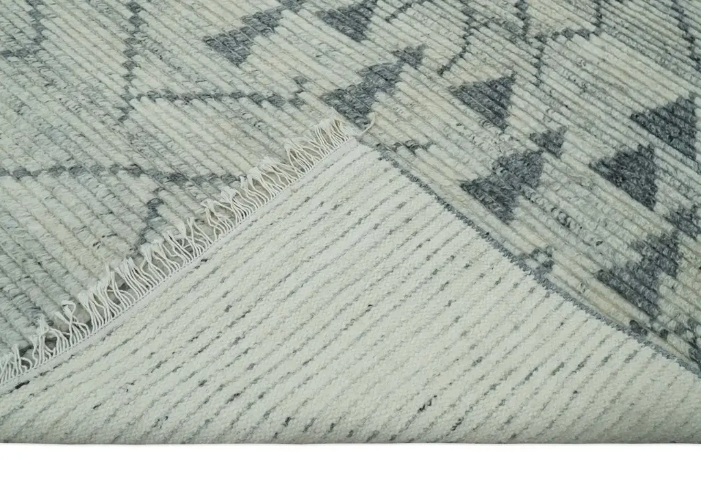 he Resurrected collection consists of rugs that carry the age-old designs, colors, and patterns of handmade rugs with a new and fresh feel to them. This Hand-Knotted Rug has been Made with Handspun Wool. The beautiful colors of the rug carry a legacy of the famous beni ourain rug, the traditional design completes your space without making it look busy. Oushak rugs are durable and can last for decades if treated right. Hand-Knotted SIZES ARE MADE TO ORDER IN 30-45 DAYS Made with Wool Color: Ivory and Charcoal This specific rug is made in India, in the city of Bhadohi. Bhadohi is one of the biggest rug manufacturing cities. Carpet weaving in the region dates back to the 16th century during the reign of Akbar. The skilled artisans of Bhadohi have been carrying the tradition of rug-making for centuries. USERS GUIDE Avoid prolonged moisture Vacuum regularly and shake to remove dust Do not pull any loose threads. Use scissors to simply cut the ends The blot spills immediately with a white cloth. Harsh chemicals may damage or fade the rug Use rug protectors under heavy furniture