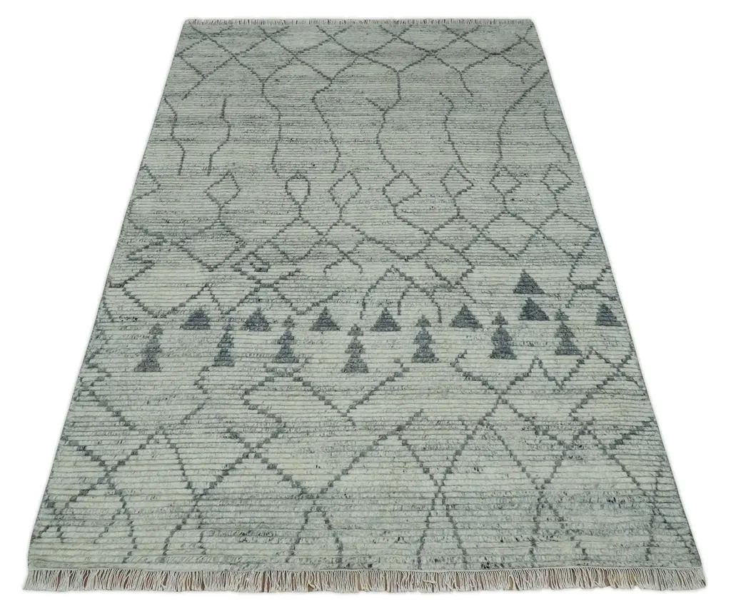 Custom Made Beni Ourain Hand Woven Ivory And Moroccan Trellis Rug Made With Blended Wool - 3X5