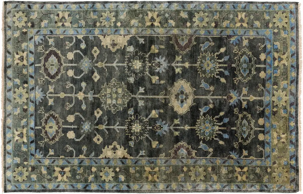 Expertly crafted for luxurious homes, this Custom Made Blue, Camel and Ivory Traditional Oriental Oushak wool Area Rug adds a touch of elegance to any room. Made with high-quality wool, this hand-knotted rug features a timeless Oriental Oushak design in striking shades of blue, camel, and ivory. Hand-Knotted Made with Wool Made to Order in 30-45 Days Color : Blue, Camel and Ivory This specific rug is made in India, in the city of Bhadohi. Bhadohi is one of the biggest rug manufacturing cities. Carpet weaving in the region dates back to the 16th century during the reign of Akbar. The skilled artisans of Bhadohi have been carrying the tradition of rug-making for centuries. USERS GUIDE Avoid prolonged moisture Vacuum regularly and/or shake to remove dust Do not pull any loose threads. Use scissors to simply cut the ends Blot spills immediately with a white cloth. Harsh chemicals may damage or fade the rug Use rug protectors under heavy furniture
