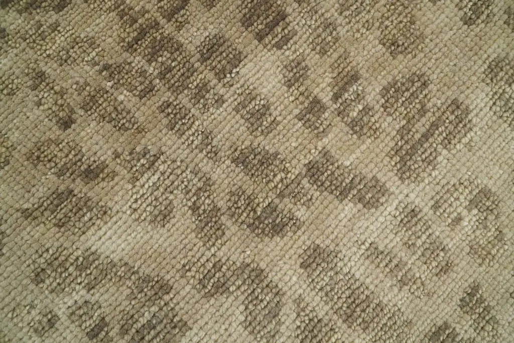 Custom Made Camel And Taupe Modern Leopard Design Hand Knotted Wool Area Rug - 2.6x11