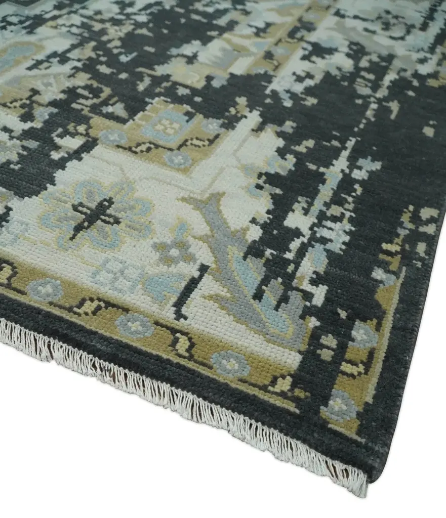 This custom-made wool rug is hand-knotted in a classic Heriz transitional style. The charcoal, ivory, and beige abstract pattern give a modern twist to a timeless design. Ideal for high-traffic areas, its sturdy texture and tight weaving make it both durable and comfortable. Hand-Knotted Made with Wool Made to Order in 30-60 Days Color: Charcoal, Ivory and Beige USERS GUIDE Avoid prolonged moisture Vacuum regularly and/or shake to remove dust Do not pull any loose threads. Use scissors to simply cut the ends Blot spills immediately with a white cloth. Harsh chemicals may damage or fade the rug Use rug protectors under heavy furniture