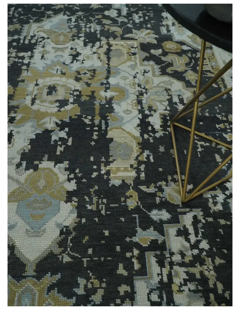 This custom-made wool rug is hand-knotted in a classic Heriz transitional style. The charcoal, ivory, and beige abstract pattern give a modern twist to a timeless design. Ideal for high-traffic areas, its sturdy texture and tight weaving make it both durable and comfortable. Hand-Knotted Made with Wool Made to Order in 30-60 Days Color: Charcoal, Ivory and Beige USERS GUIDE Avoid prolonged moisture Vacuum regularly and/or shake to remove dust Do not pull any loose threads. Use scissors to simply cut the ends Blot spills immediately with a white cloth. Harsh chemicals may damage or fade the rug Use rug protectors under heavy furniture