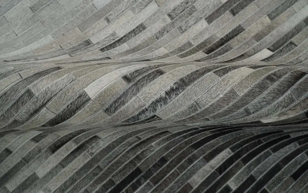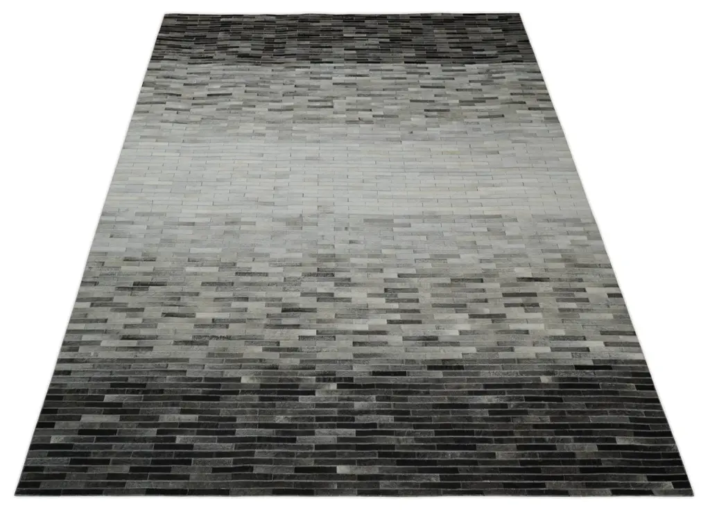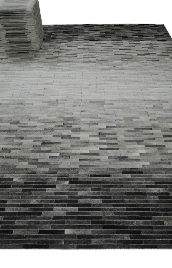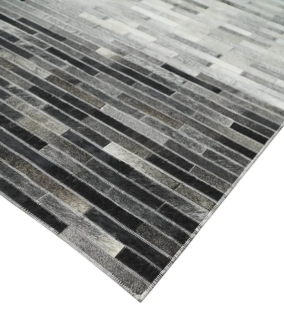 Custom Made Cowhide Leather Striped Gray And Silver Leather Rug, Modern Rug - 3X5