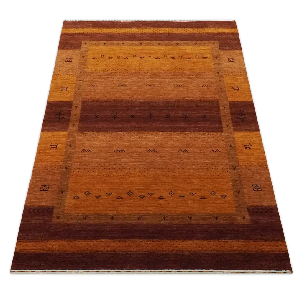 Expertly handcrafted with a unique rust and brown color palette, this wool area rug features a striking geometrical stripes design. Made using a traditional handloom, this multi-size rug adds a touch of elegance to any room while also providing durability and long-lasting quality. Hand-loom Rug Made with Wool Color: Rust and Brown ALL SIZES ARE MADE TO ORDER 30 - 60 Days USERS GUIDE Avoid prolonged moisture Vacuum regularly and shake to remove dust Do not pull any loose threads. Use scissors to simply cut the ends The blot spills immediately with a white cloth. Harsh chemicals may damage or fade the rug Use rug protectors under heavy furniture