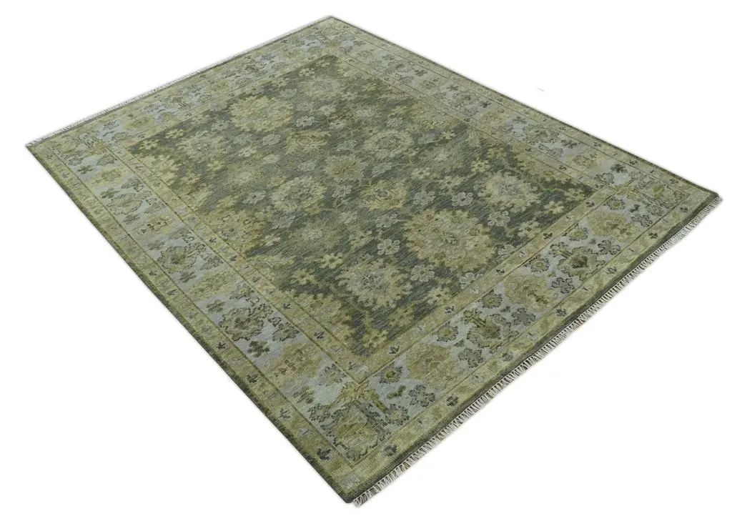 This elegant rug exudes timeless luxury with its subdued palette of serene blues, earthy greens, and subtle golds. The intricate floral and medallion patterns weave effortlessly across its surface, embodying rich tradition. A delicate border frames the central design with precision, enhancing its regal appeal. The rug’s plush texture provides a soft, inviting feel underfoot, while the craftsmanship showcases an artisanal touch, making it a perfect statement piece for an opulent living space. Product Details Color: Green, Silver, and Olive Design: Traditional Oushak Material: Wool Construction: Hand-Made Knots Per Inch (KPI): 22 Availability: Multiple sizes, Made to order in 30-45 days Care Guide Keep dry and well-ventilated Clean dust by vacuuming or shaking outdoors Cut loose threads with scissors - never pull them Dab spills with clean white cloth; avoid strong cleaning products Place protective pads under furniture legs