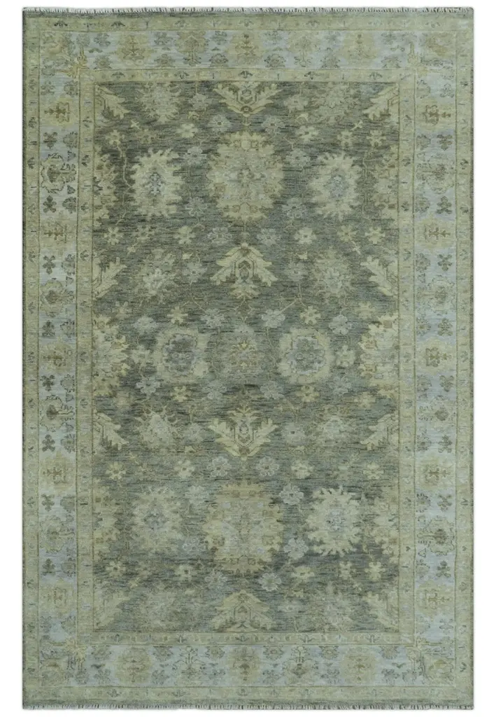 This elegant rug exudes timeless luxury with its subdued palette of serene blues, earthy greens, and subtle golds. The intricate floral and medallion patterns weave effortlessly across its surface, embodying rich tradition. A delicate border frames the central design with precision, enhancing its regal appeal. The rug’s plush texture provides a soft, inviting feel underfoot, while the craftsmanship showcases an artisanal touch, making it a perfect statement piece for an opulent living space. Product Details Color: Green, Silver, and Olive Design: Traditional Oushak Material: Wool Construction: Hand-Made Knots Per Inch (KPI): 22 Availability: Multiple sizes, Made to order in 30-45 days Care Guide Keep dry and well-ventilated Clean dust by vacuuming or shaking outdoors Cut loose threads with scissors - never pull them Dab spills with clean white cloth; avoid strong cleaning products Place protective pads under furniture legs