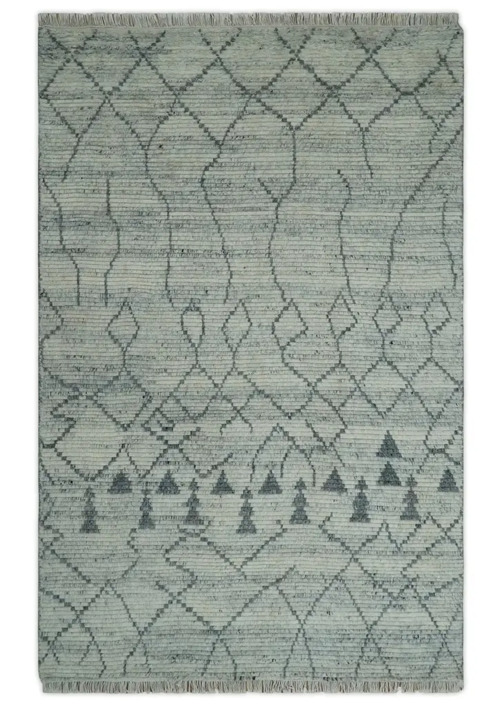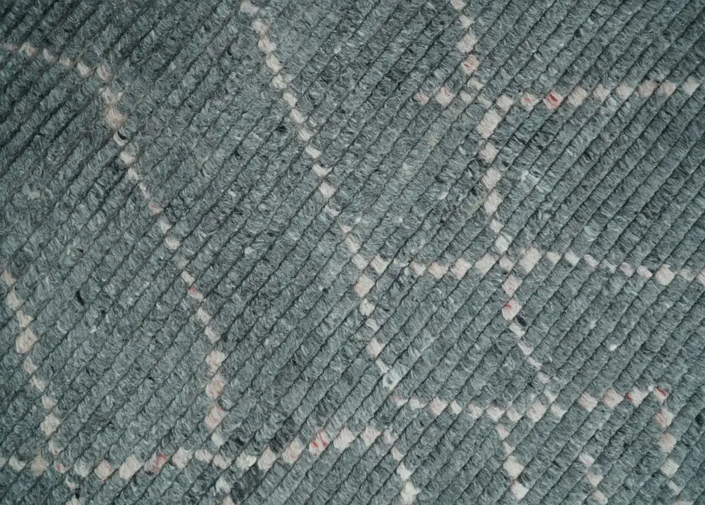 This Hand-Knotted Rug has been Made with Handspun Wool. The beautiful colors of the rug carry a legacy of the famous Morrocan rug, the traditional design of the rug completes your space without making it look busy. Hand Knotted rugs are durable and can last for decades if treated right. Hand-Knotted SIZES ARE MADE TO ORDER IN 30-45 DAYS Made with Wool Color: Charcoal and Ivory This specific rug is made in India, in the city of Bhadohi. Bhadohi is one of the biggest rug manufacturing cities. Carpet weaving in the region dates back to the 16th century during the reign of Akbar. The skilled artisans of Bhadohi have been carrying the tradition of rug-making for centuries. USERS GUIDE Avoid prolonged moisture Vacuum regularly and/or shake to remove dust Do not pull any loose threads. Use scissors to simply cut the ends The blot spills immediately with a white cloth. Harsh chemicals may damage or fade the rug Use rug protectors under heavy furniture