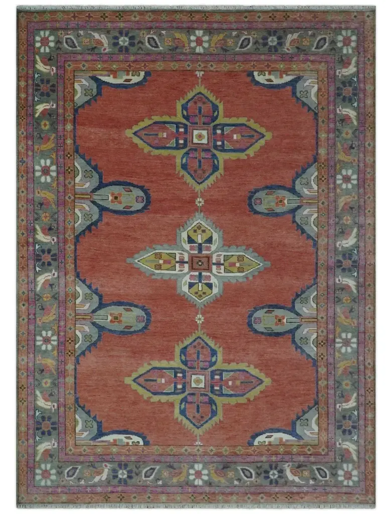Enhance your living room or bedroom with this Hand Knotted Dark Peach and Silver Traditional Wool Rug. Hand-knotted for a lasting, tight weave, this rug is perfect for both high and low-traffic areas. Showcasing a timeless Traditional design blended with high-quality Heriz Wool in warm Dark Peach and Silver hues, this rug will bring a classic beauty to any home. Hand-Knotted Rug Made with Soft Wool Color : Dark Peach and Silver Made with 28 knots per square inch MADE TO ORDER 30-60 Days This specific rug is made in India, in the city of Bhadohi. Bhadohi is one of the biggest rug manufacturing cities. Carpet weaving in the region dates back to the 16th century during the reign of Akbar. The skilled artisans of Bhadohi have been carrying the tradition of rug-making for centuries. USERS GUIDE Avoid prolonged moisture Vacuum regularly and/or shake to remove dust Do not pull any loose threads. Use scissors to simply cut the ends Blot spills immediately with a white cloth. Harsh chemicals may damage or fade the rug Use rug protectors under heavy furniture