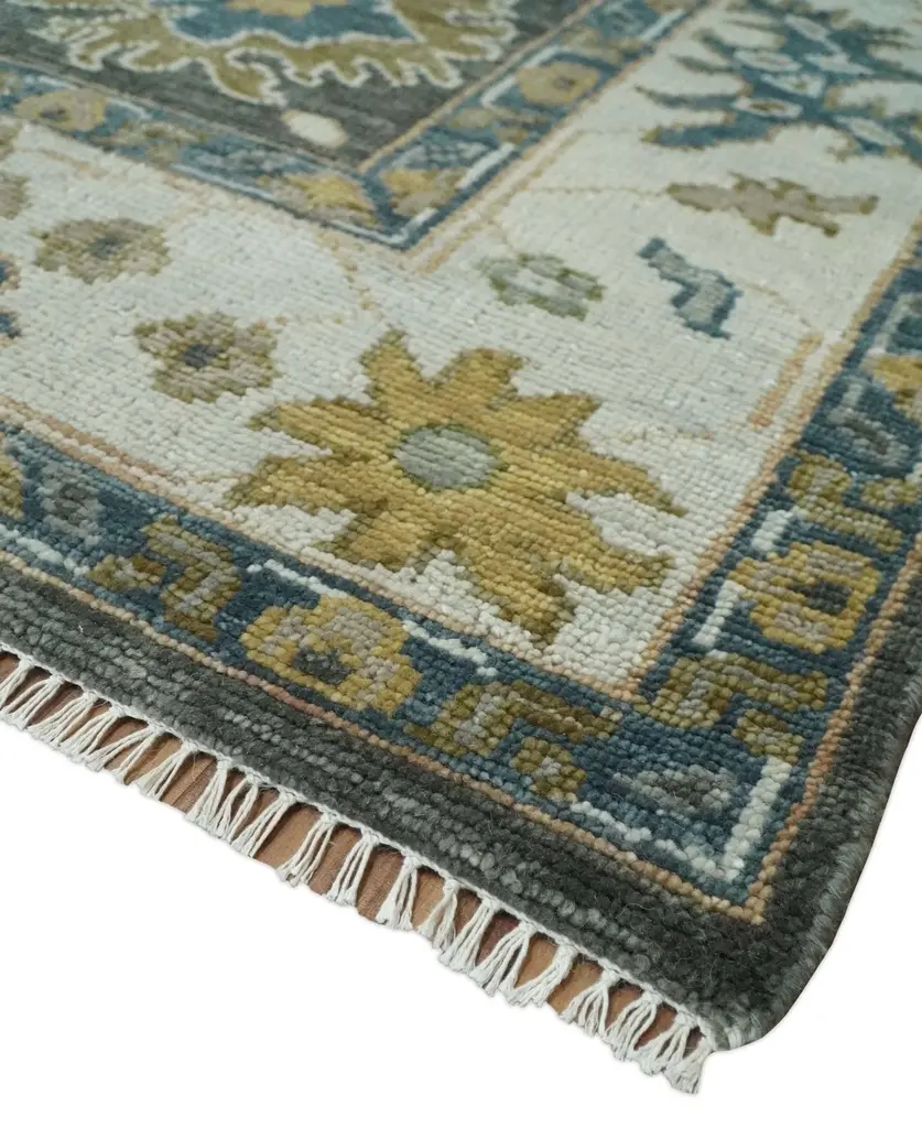 This Hand-Knotted Rug has been Made with Handspun Wool. The beautiful colors of the rug carry a legacy of the famous Oushak rug, the traditional design of the rug completes your space without making it look busy. Heriz rugs are durable and can last for decades if treated right. Hand-Knotted Rug Made with Wool Color: Green, Mustard and Ivory Made with 22 knots per square inch SIZES ARE MADE TO ORDER 30-45 days Heriz rugs have been made for centuries and carry a tradition and art. This specific rug is made in India, in the city of Bhadohi. Bhadohi is one of the biggest rug manufacturing cities. Carpet weaving in the region dates back to the 16th century during the reign of Akbar. The skilled artisans of Bhadohi have been carrying the tradition of rug-making for centuries. USERS GUIDE Avoid prolonged moisture Vacuum regularly and/or shake to remove dust Do not pull any loose threads. Use scissors to simply cut the ends Blot spills immediately with a white cloth. Harsh chemicals may damage or fade the rug Use rug protectors under heavy furniture