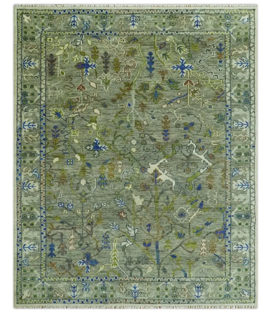 This Hand-Knotted Rug has been Made with Handspun Wool. The beautiful colors of the rug carry a legacy of the famous Oushak rug, the traditional design of the rug completes your space without making it look busy. Heriz rugs are durable and can last for decades if treated right. Hand-Knotted Rug Made with Wool Color: Green, Mustard and Ivory Made with 22 knots per square inch SIZES ARE MADE TO ORDER 30-45 days Heriz rugs have been made for centuries and carry a tradition and art. This specific rug is made in India, in the city of Bhadohi. Bhadohi is one of the biggest rug manufacturing cities. Carpet weaving in the region dates back to the 16th century during the reign of Akbar. The skilled artisans of Bhadohi have been carrying the tradition of rug-making for centuries. USERS GUIDE Avoid prolonged moisture Vacuum regularly and/or shake to remove dust Do not pull any loose threads. Use scissors to simply cut the ends Blot spills immediately with a white cloth. Harsh chemicals may damage or fade the rug Use rug protectors under heavy furniture