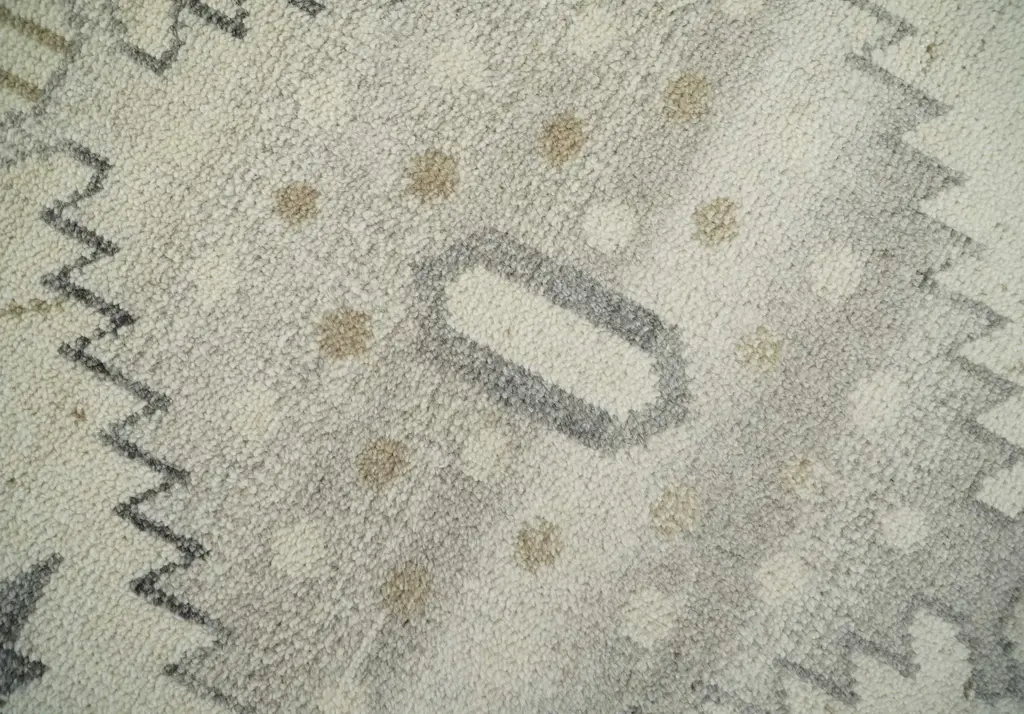 Custom Made Hand Knotted Ivory And Charcoal Traditional Tribal Natural Wool Area Rug, Kids, Living Room And Bedroom Rug - 2.6x10