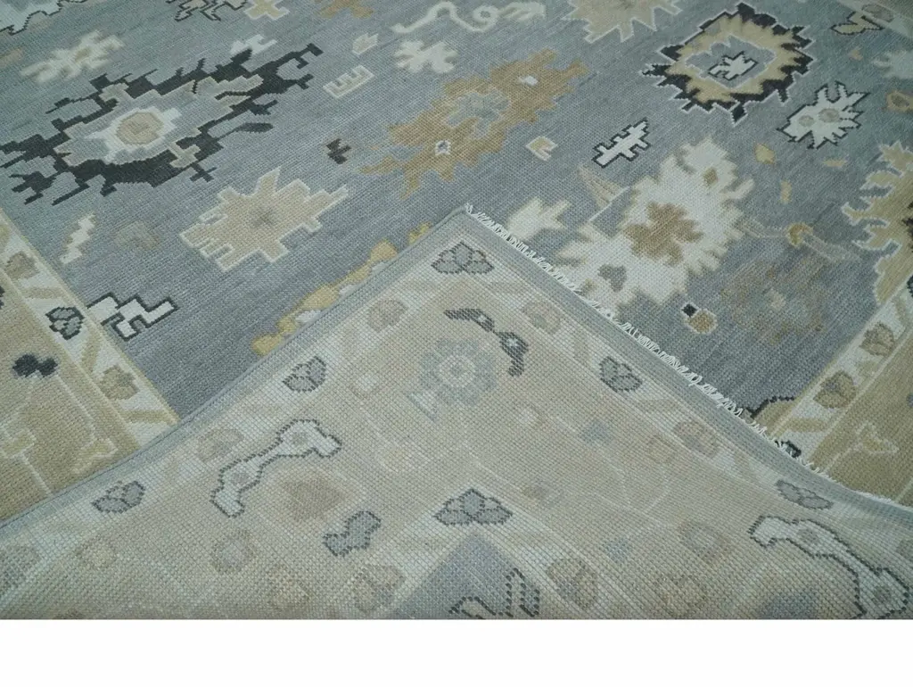 This Hand hand-knotted traditional Oushak Wool Area Rug is a timeless addition to any space. Featuring a classic silver and beige design, this hand-knotted rug is crafted from the finest wool for enduring quality and style. Add warmth and comfort, while creating a classic look, with this elegant piece. Hand-Knotted SIZES ARE MADE TO ORDER IN 30-60 DAYS Made with Wool Color: Silver and Beige Made with 28 knots per square inch This specific rug is made in India, in the city of Bhadohi. Bhadohi is one of the biggest rug manufacturing cities. Carpet weaving in the region dates back to the 16th century during the reign of Akbar. The skilled artisans of Bhadohi have been carrying the tradition of rug-making for centuries. USERS GUIDE Avoid prolonged moisture Vacuum regularly and/or shake to remove dust Do not pull any loose threads. Use scissors to simply cut the ends The blot spills immediately with a white cloth. Harsh chemicals may damage or fade the rug Use rug protectors under heavy furniture