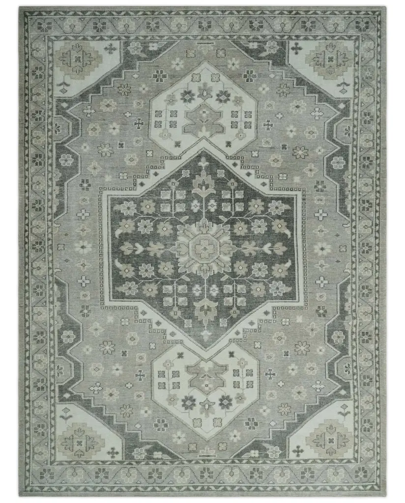 Bring a timeless style to your living space with this gorgeous Traditional Ivory, Silver, and Charcoal Antique Style Hand knotted Multi Size wool Area Rug. Hand-knotted from wool, this exquisite piece boasts a classic motif featuring beautiful ivory, silver, and charcoal colors. Perfect for creating a sophisticated statement. Hand-Knotted Rug All sizes are made to order in 30-60 days Made with Wool Color: Ivory, Silver and Charcoal Made with 22 knots per square inch This specific rug is made in India, in the city of Bhadohi. Bhadohi is one of the biggest rug manufacturing cities. Carpet weaving in the region dates back to the 16th century during the reign of Akbar. The skilled artisans of Bhadohi have been carrying the tradition of rug-making for centuries. USERS GUIDE Avoid prolonged moisture Vacuum regularly and/or shake to remove dust Do not pull any loose threads. Use scissors to simply cut the ends The blot spills immediately with a white cloth. Harsh chemicals may damage or fade the rug Use rug protectors under heavy furniture