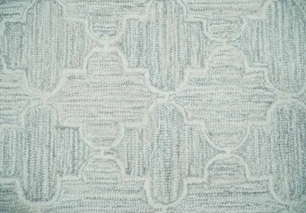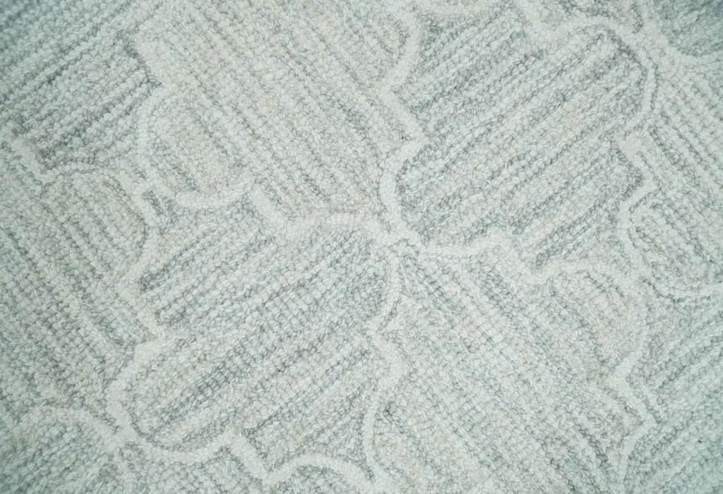 Custom Made Ivory And Silver Modern Geometric Hand Tufted Natural Wool Area Rug - 2.6x12