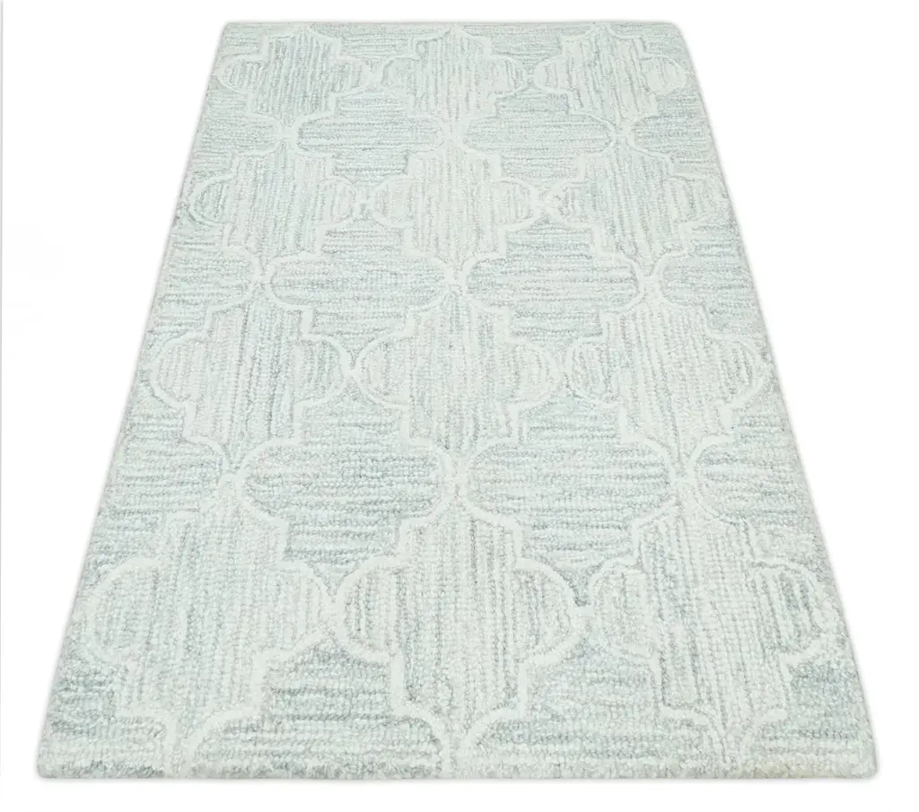 The Mirage Collection is an intricate piece of art, the modern subtle design and beautiful tone-on-tone colors fit in any space. Hand-made with wool. It's perfect for a modern space but not limited to it. The loop and cut pile give the rug a unique texture. SIZES MADE TO ORDER IN 15-20 DAYS Hand Tufted The rug size in the image is 2x3 Made with Wool loop Color: Ivory and silver USERS GUIDE Avoid prolonged moisture Vacuum regularly and/or shake to remove dust Do not pull any loose threads. Use scissors to simply cut the ends Blot spills immediately with a white cloth. Harsh chemicals may damage or fade the rug Use rug protectors under heavy furniture