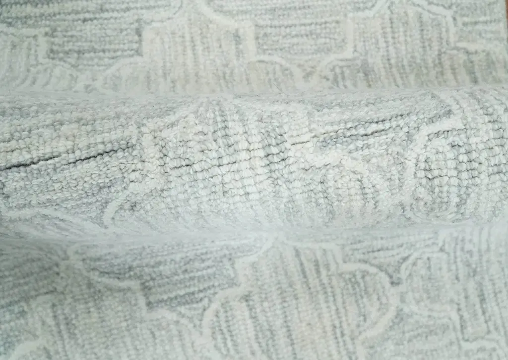The Mirage Collection is an intricate piece of art, the modern subtle design and beautiful tone-on-tone colors fit in any space. Hand-made with wool. It's perfect for a modern space but not limited to it. The loop and cut pile give the rug a unique texture. SIZES MADE TO ORDER IN 15-20 DAYS Hand Tufted The rug size in the image is 2x3 Made with Wool loop Color: Ivory and silver USERS GUIDE Avoid prolonged moisture Vacuum regularly and/or shake to remove dust Do not pull any loose threads. Use scissors to simply cut the ends Blot spills immediately with a white cloth. Harsh chemicals may damage or fade the rug Use rug protectors under heavy furniture